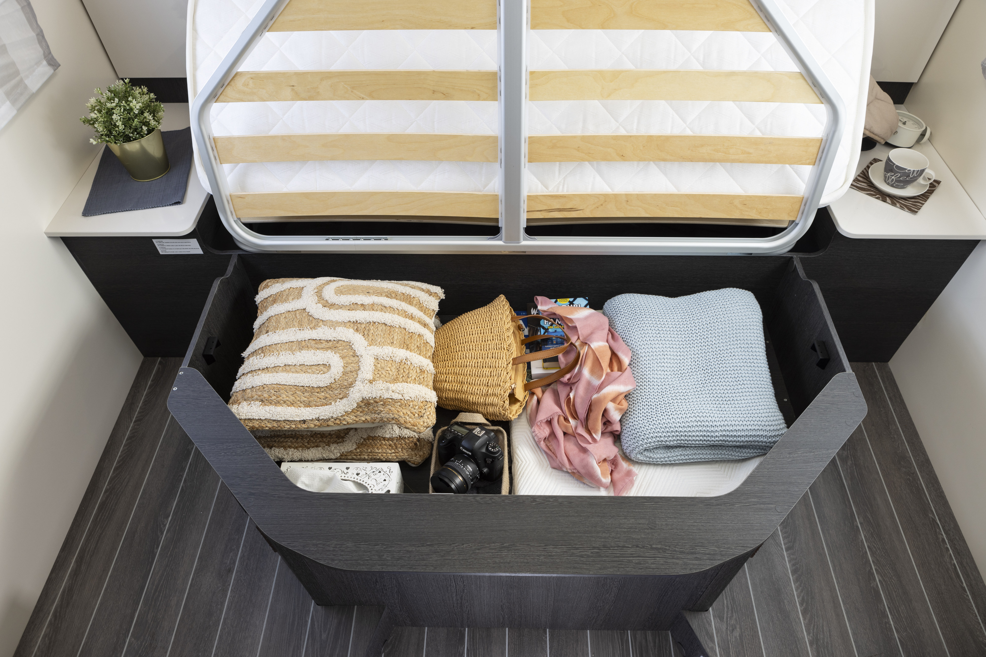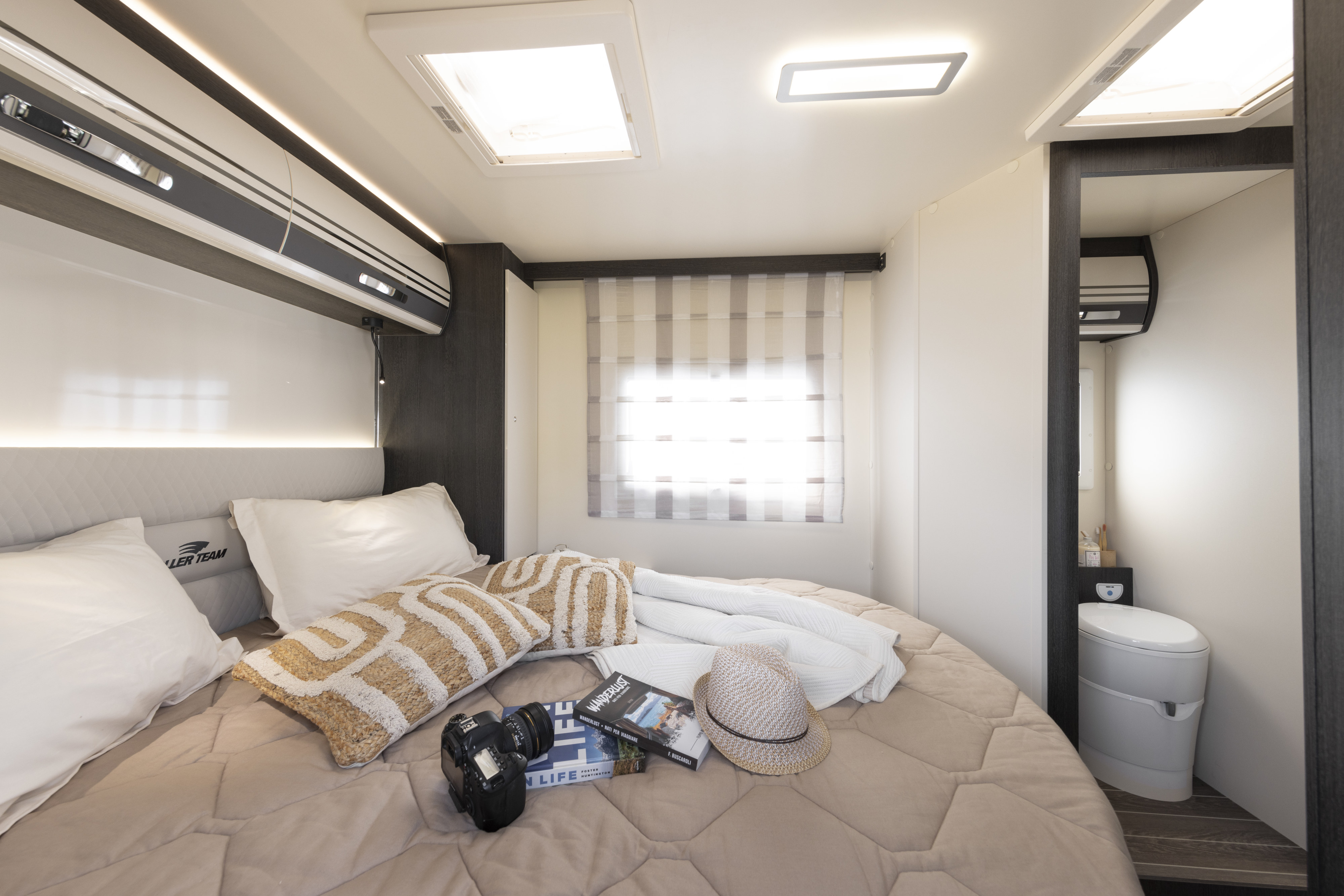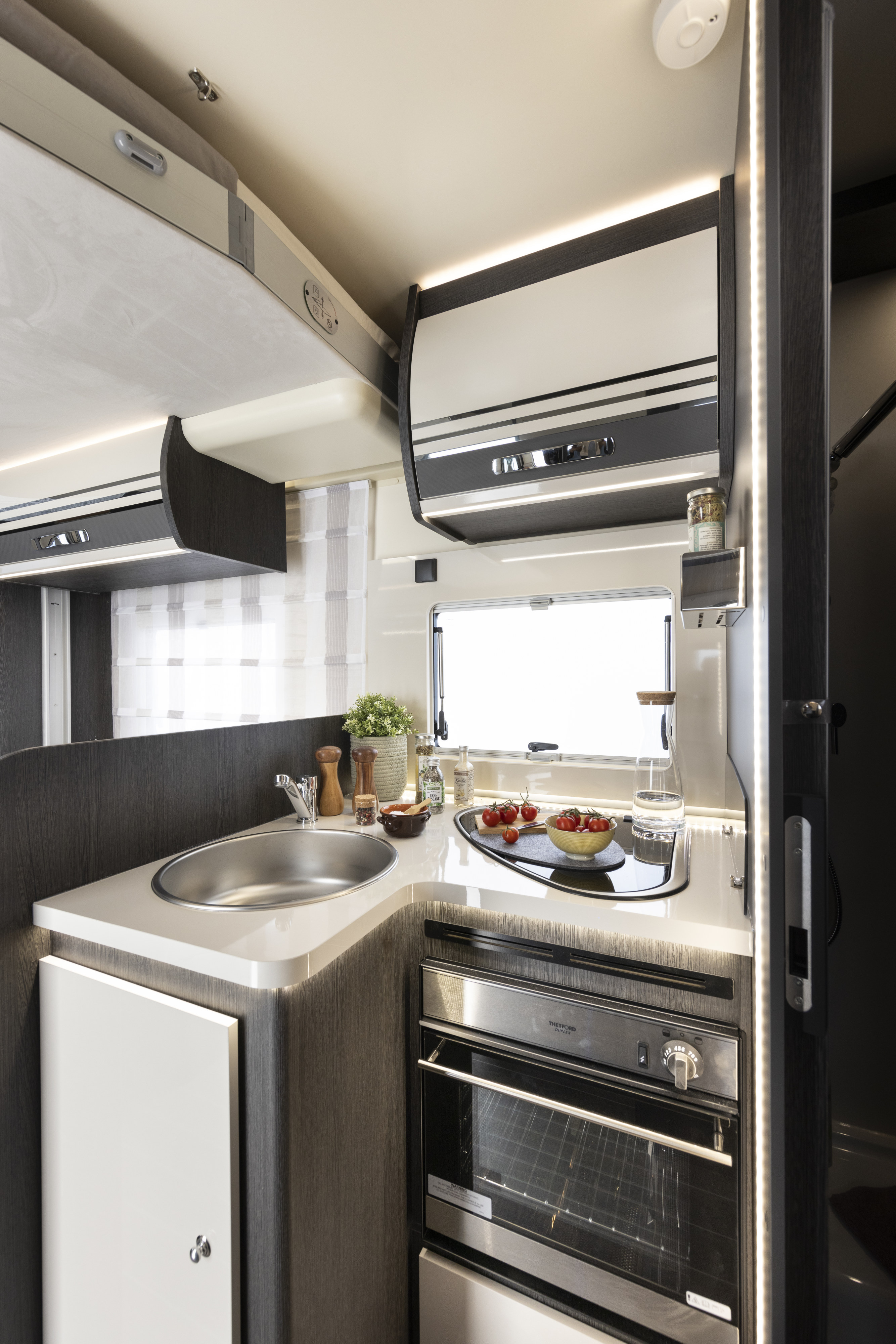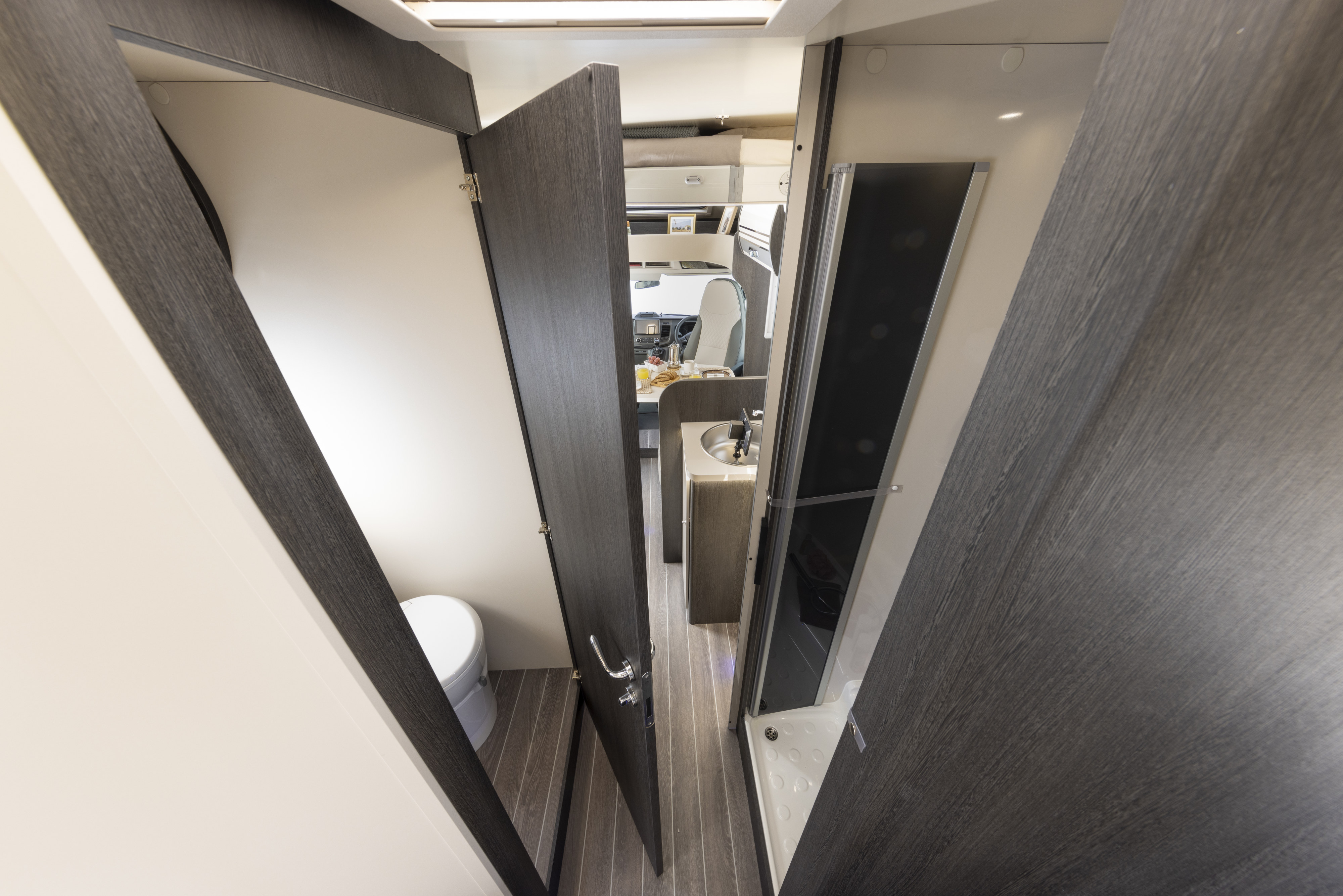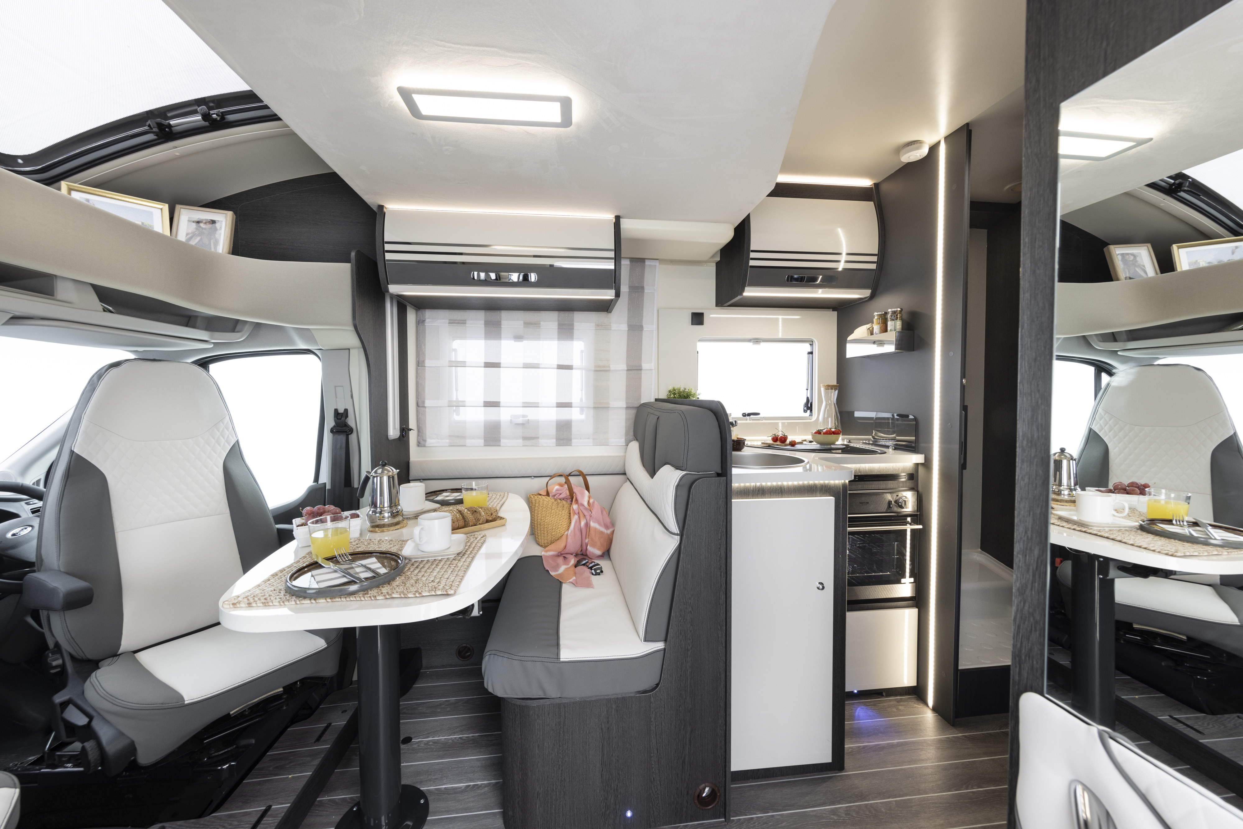 Get the five-star hotel feeling in the Zefiro 696. A rear island bed with under bed storage, bedside tables and two wardrobes all closed off by sliding to door give a level of privacy and peacefulness usually only ever dreamed of when away in a hotel. Just in front of this, you’ll discover the domestic style shower cubicle separate from the remainder of the bathroom. The popular L-shaped lounge area, dressed in fine marta soft furnishings, creates seating for up to five people during the day, offering a homely space for relaxing and entertaining. Come night-time, a second double bed from the delicate body curves of the Zefiro 696 lowers down above the lounge using a smooth, electric mechanism. This motorhome on order comes with: 4 Berths, 4 Travel seats, Automatic, Electric drop down bed, Isofix, Sat Nav Pioneer head unit, Cab Blinds, Fresh and waste water tanks, gas and electric blown air heating, Blinds + Flyscreens, Bike Rack, Reverse camera, Solar Panel, smart TV, Driver + Passenger airbags, Swivel seats, Awning Light, Skylights, Heated front windscreen, 3 way fridge freezer, oven/grill, TV Prep point, Large Garage, 4G WIFI, Automatic, Electric Flex Space bed, 3 x gas hobs, Awning light, New Drivers pack containing: 165BHP Engine upgrade, Moondust Silver cab, 16″ Alloy wheels, Locking Glove box, Full colour bumpers and side mouldings, high series headlamp with static bending. Length: 7.45m, Width: 2.35m GVW: 3500kgs, MIRO: 3035kgs.